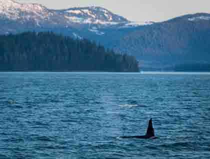 At the end of Recap, the expedition leader became a sea otter look-alike to tell us about Crab Feast and everyone enjoyed this super delicious local specialty. The finale of the day was seeing a lone male killer whale travelling along Frederick Sound as the sun set over the towering mountains. Ho hum, just another day in amazing Alaska!