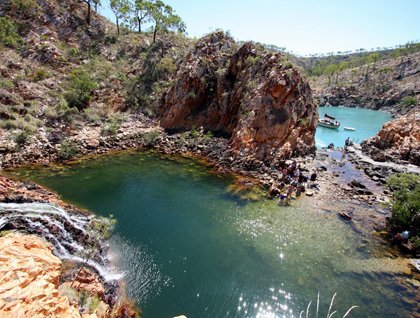 Fitting then, our first day and indeed our first activity offered a sort of baptism into the spirit of the Kimberly with a chance to immerse ourselves in a secretive gem: the swimming hole at Crocodile Creek.  This tranquil spot, likely “discovered” by local miners who use the waters here for their own recreation, sits hidden behind some of the folds of this coastline but gave us a chance to swim without fear of the saltwater crocodile.  The name of the creek cascading down into the pool and then eventually into the sea, is thought to come from the jagged outline of the coastal headland and not from the presence of the fearsome animal.  We swam beneath falls, some of us surprised by the thermocline found within the pool; the cool freshwater sitting on top of the warmer sea water that inundates the pool during the highest tides.  Keen observers might have also noted the presence of a few local jellyfish surprisingly devoid of stingers not needed in this protected lagoon.