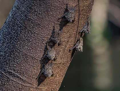 We then leave the main Ucayali River to follow a small caño upstream into a very tight waterway. The rain forest presses in close and towers above us. Common squirrel monkeys peer at us from their lofty canopy positions. Birds of all sizes and colors flit to and fro across the small stream. Raptors of many types patiently watch the scene, eerily waiting for their next meal. Long-nosed bats line the trunks of several trees, so well camouflaged that they look like part of their host tree. Blue morpho butterflies became metallic splashes of color as we vainly try to capture their movement on our memory cards. The humidity and temperature finally catch up to us, and we return to the Delfin II for a little rest and rehydration.