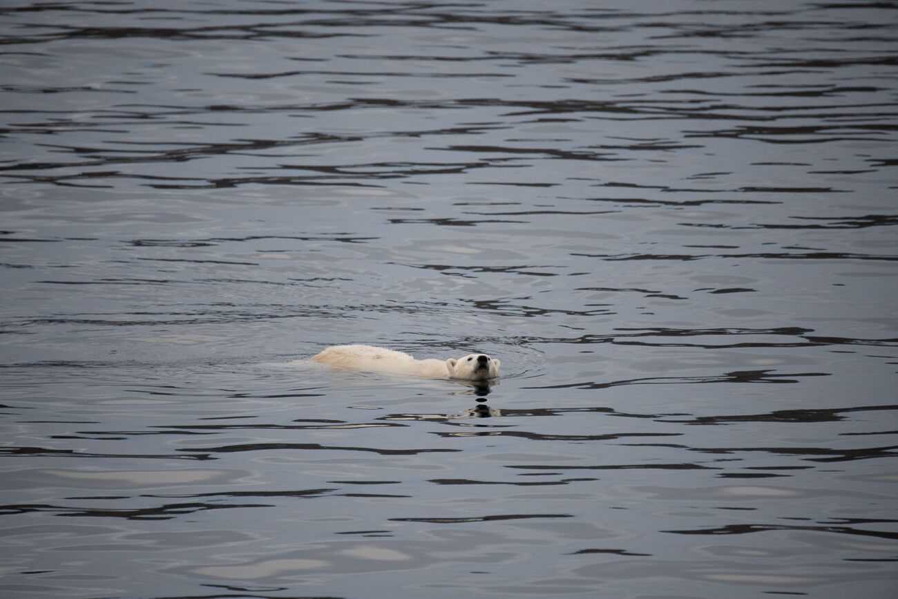 Our day began with much anticipation to hike and get in the water with the kayaks at York Sound, Baffin Island. We arrived in the morning to York Sound. This beautiful fjord is located at the southern tip of Baffin Island and Frobisher Bay. It is home to an attractive camping ground for the local Inuit population that live in Iqaluit, the capital of Nunavut, which is located right at the top of Frobisher Bay. The area is usually not very accessible due to being unprotected from the larger swells from the North Atlantic seas. This place is fantastic for seeing polar bears, caribou, arctic foxes, wolves, and for the locals in the area: a large proportion of arctic char! Without delay, two polar bears were spotted swimming towards National Geographic Explorer before we got anyone in a kayak. This gave us a fantastic experience with a curious young male that swam very close to the ship’s bow for quite some time. The encounter with the bears forced us to move onto our next destination: the Lower Savage Islands! We were greeted with heavy fogs and calmer waters. More polar bears were spotted lining the inlets of the many channels that fill the archipelago. Many seals, including harp and bearded seals, were graciously playing about. The heavy fog provided a dramatic and memorable landscape for the guests. Icebergs popped out of seemingly nowhere as we took Zodiac cruises around the area before heading to our next destination.