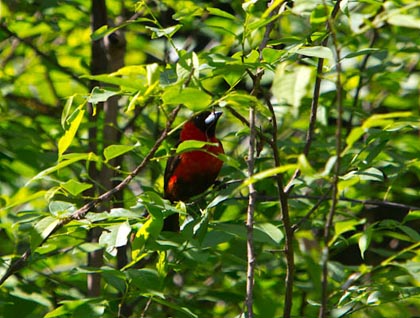 Some of us focused on photography, slowly approaching various birds and flowers. Kingfishers always seem shy, so we searched for other birds including hawks, cardinals, and antbirds. Another burst of color was a masked crimson tanager. This blazing red and black bird was busy feeding along the riverside. Making our way back to the comforts of the Delfin II, it was time to begin heading back towards Nauta.