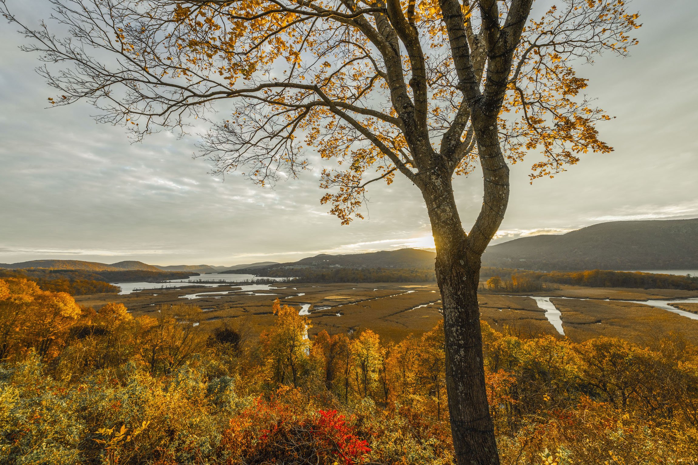 Vistas of autumnal leaves and the umber fall fields of Constitution Marsh as seen from the neighboring Boscobel House and Gardens.