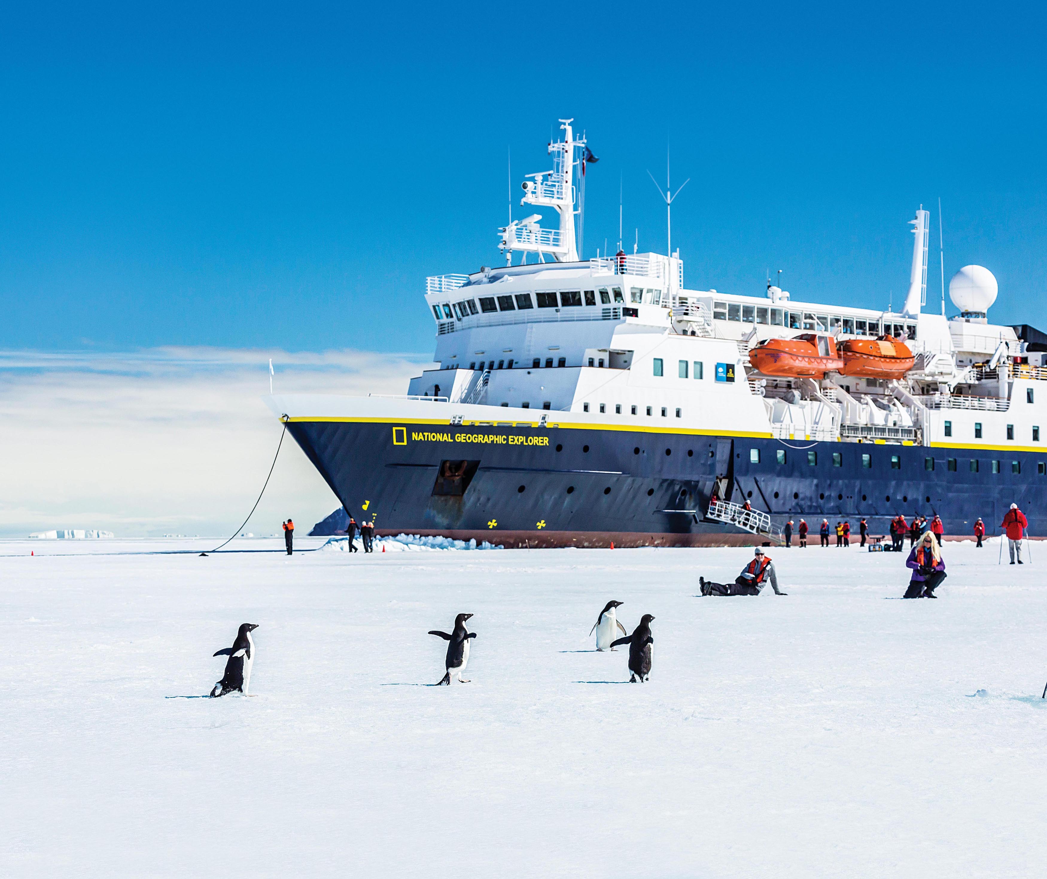 National Geographic Explorer is equipped with a roster of tools that get you off the ship and into the heart of the wild. A fleet of double kayaks (we pioneered kayaking in polar geographies!) plus Zodiac landing craft allow you to get down to water-level for unprecedented experiences in the ice. Paddle among towering icebergs, cruise past penguins, or get a front-row seat to a leopard seal on the hunt. On early season Antarctica voyages, you can even strap on a pair of snowshoes or cross-country skis and blaze a trail across a frozen sea.