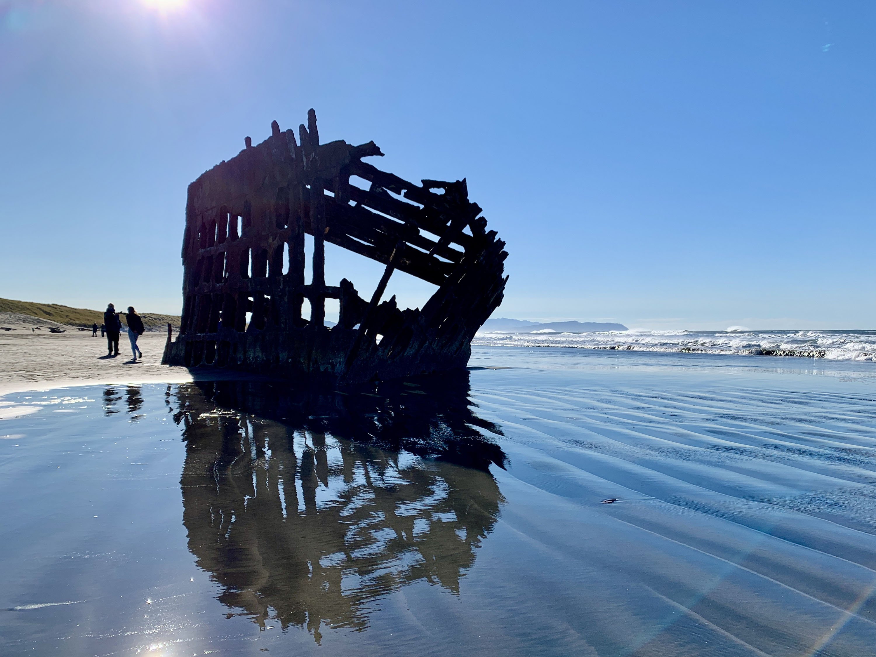 The rusted bow of the Peter Iredale rests on the sands where the ship was stranded 115 years ago. It has been a tourist attraction ever since.—Robert Edwards, Naturalist