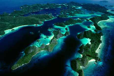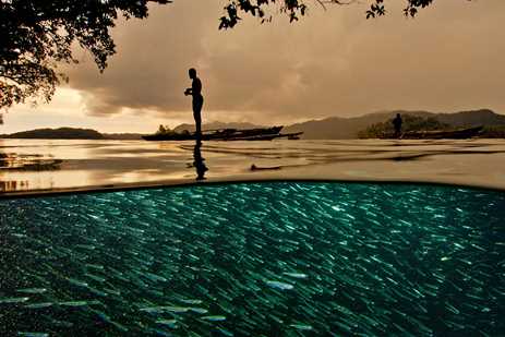 When you plunge into these turquoise waters prepare to be utterly amazed. There are over 1,500 coral reef fish species, five of the world’s seven sea turtle species, and seven giant clam species—and that is only the beginning. “The seascape is a tapestry of habitat,” say Doubilet & Hayes. “Shallow corals patrolled by walking sharks, deep reefs awash in nutrients, blue water mangroves, mangroves with carpets of leather coral so thick you can’t see the bottom, limestone caves. And then there is the marine life—walls of fish on Cape Kri, carousels of manta rays, and clouds of chromis in Melissa’s Garden.”