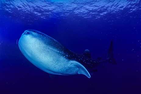 The largest fish in the sea, a whale shark glides through the waters of Raja Ampat.