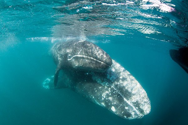 Eric and friends share a magical moment with a baby gray whale off the coast of Baja California.