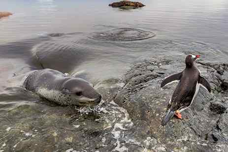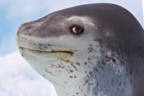 The corners of a leopard seal’s mouth curve upward, resembling a smile—but underneath that deceptively sweet disposition are large canines designed for the kill. The only seal that regularly hunts warm-blooded prey, leopard seals grab penguins (and even other seals!) with razor sharp teeth, then violently thrash their catch back and forth.
