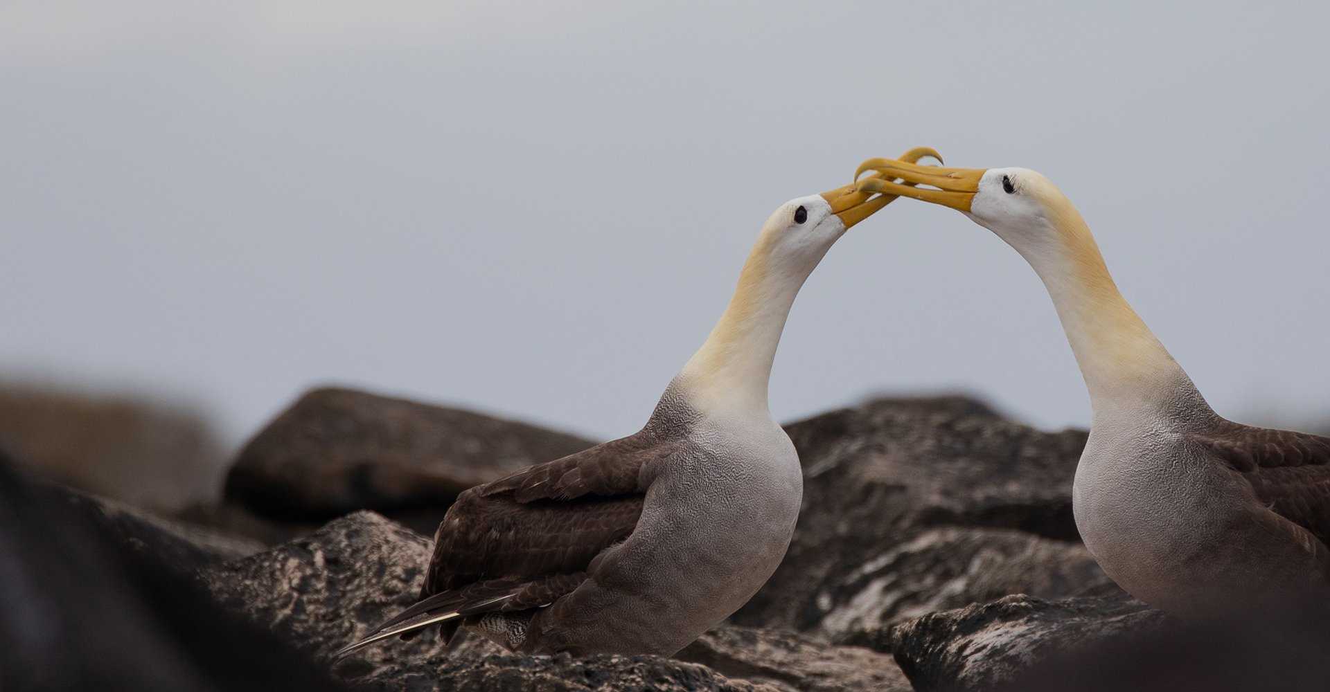 There’s a dance party happening in Galápagos unlike any other in the world! On Isla Española, the southernmost island in the archipelago, thousands of waved albatross take part in a one-of-a-kind courtship ritual. The lively dance includes an array of steps—from beak fencing and head nodding to bowing, honking and sky pointing—all performed with precision as partners mirror each other’s moves. These behaviors pick up speed and sometimes on the crowded breeding grounds, the air becomes a spectacular frenzy of calls and motion.
