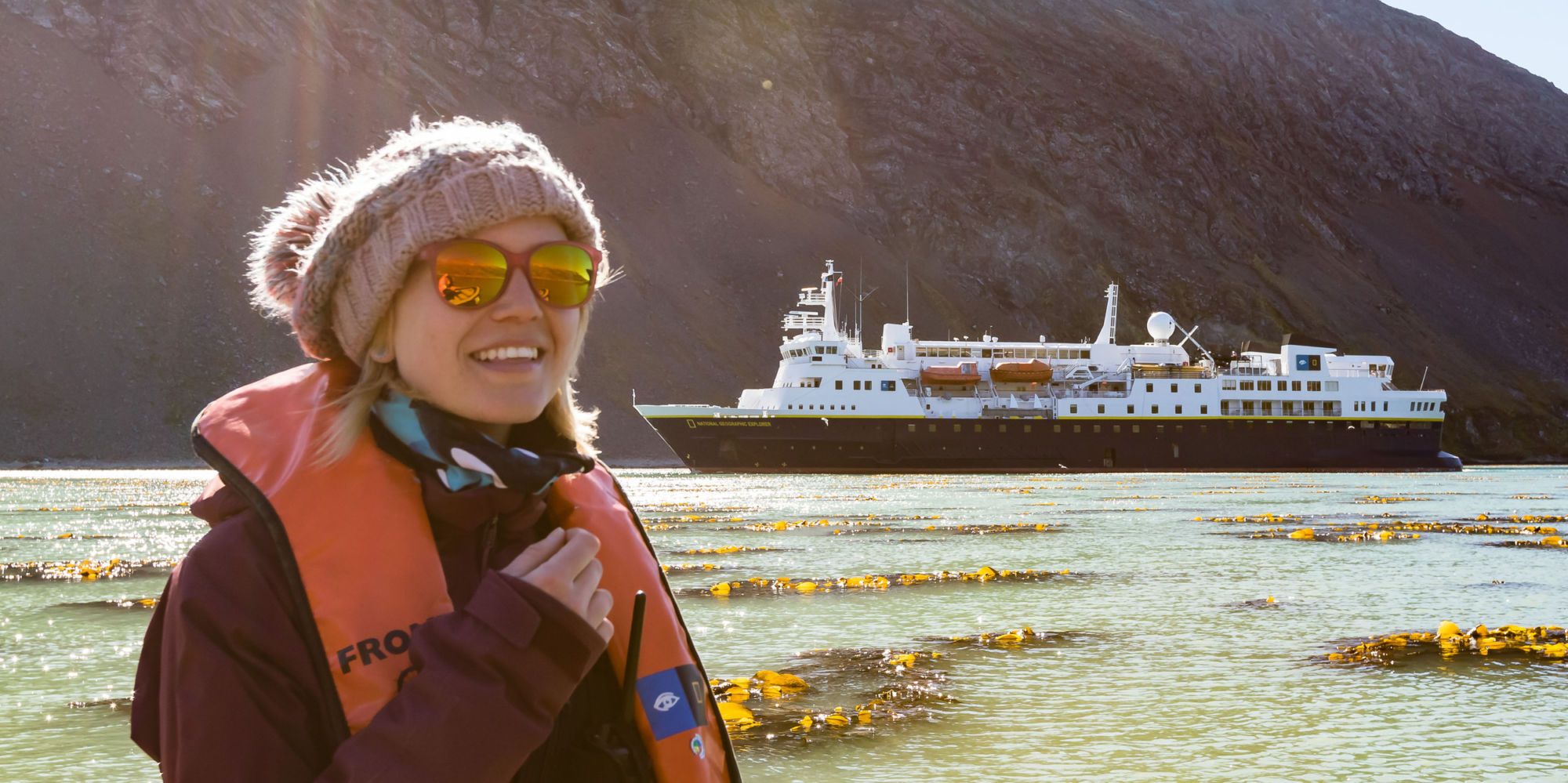 learn moreWhen naturalist Ella Potts isn’t scanning the seas for life from the bow of our ships in places like Antarctica, South Georgia, and the Arctic, she’s busy with ongoing cetacean research projects and presenting public talks to an array of audiences.